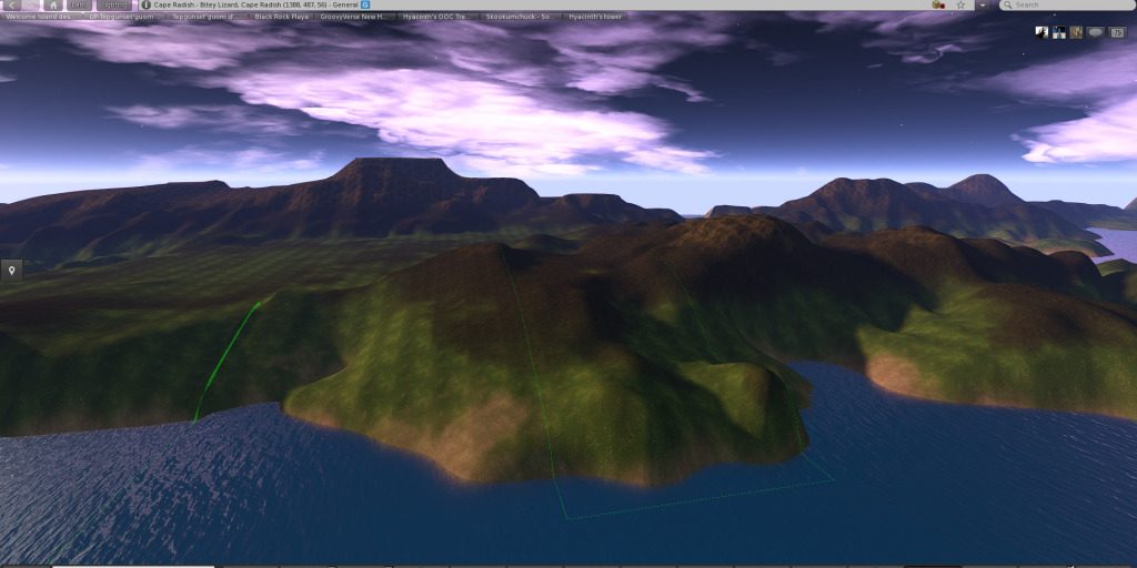 Hyacinth's Mountaintop Palace of Doom - FOR SALE!Residential use, a public park space, or a small place to gather with friends. No big shops, malls or busy clubs. This is a pastoral landscape, so your build must blend in and not disturb the peace. GroovyVerse Residents only. Please read covenant